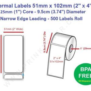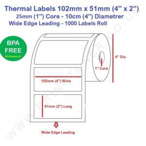 1000 Thermal Labels 4 x 3 Inch (102 x 76mm) 2 Rolls